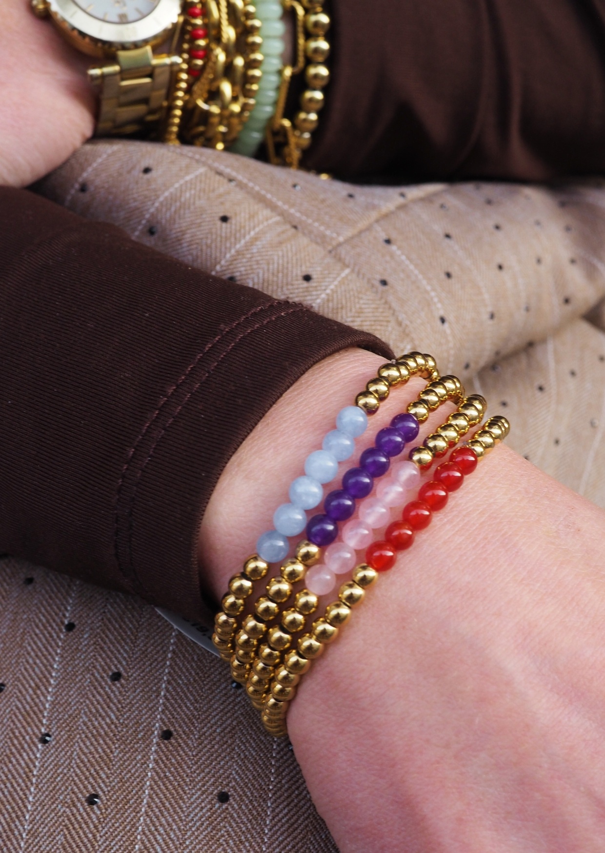 Armband beads 4mm 6x blauwe aventurijn goud medium