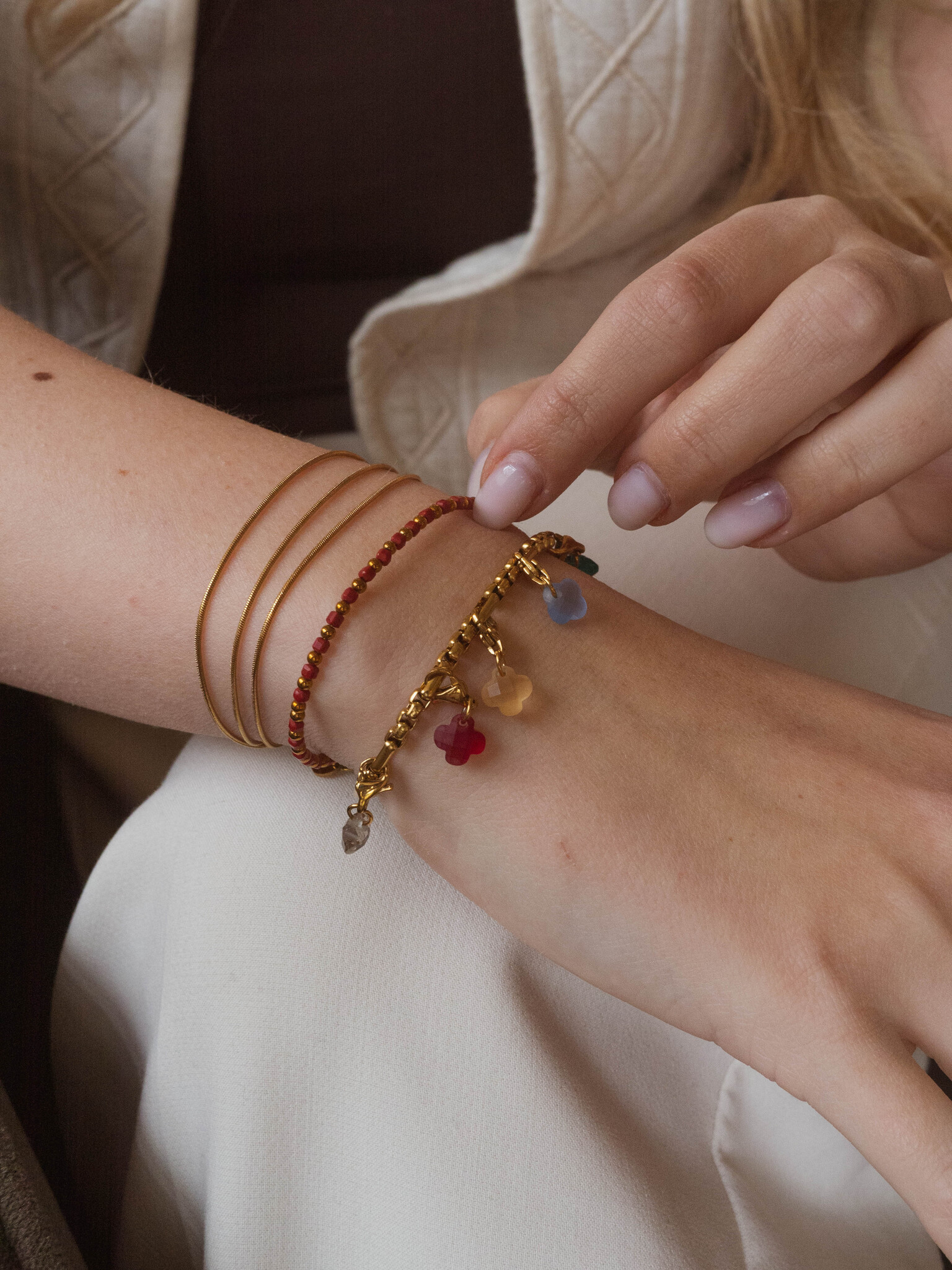 Ketting clover shiny licht bruin goud