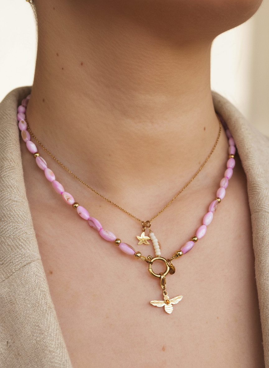 Ketting oval shell licht roze goud