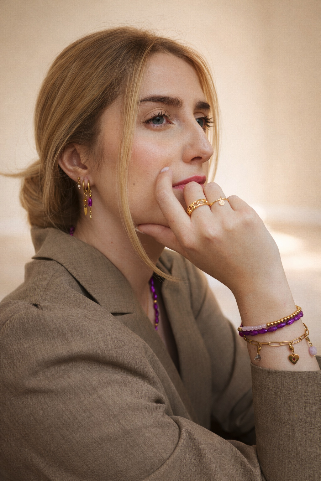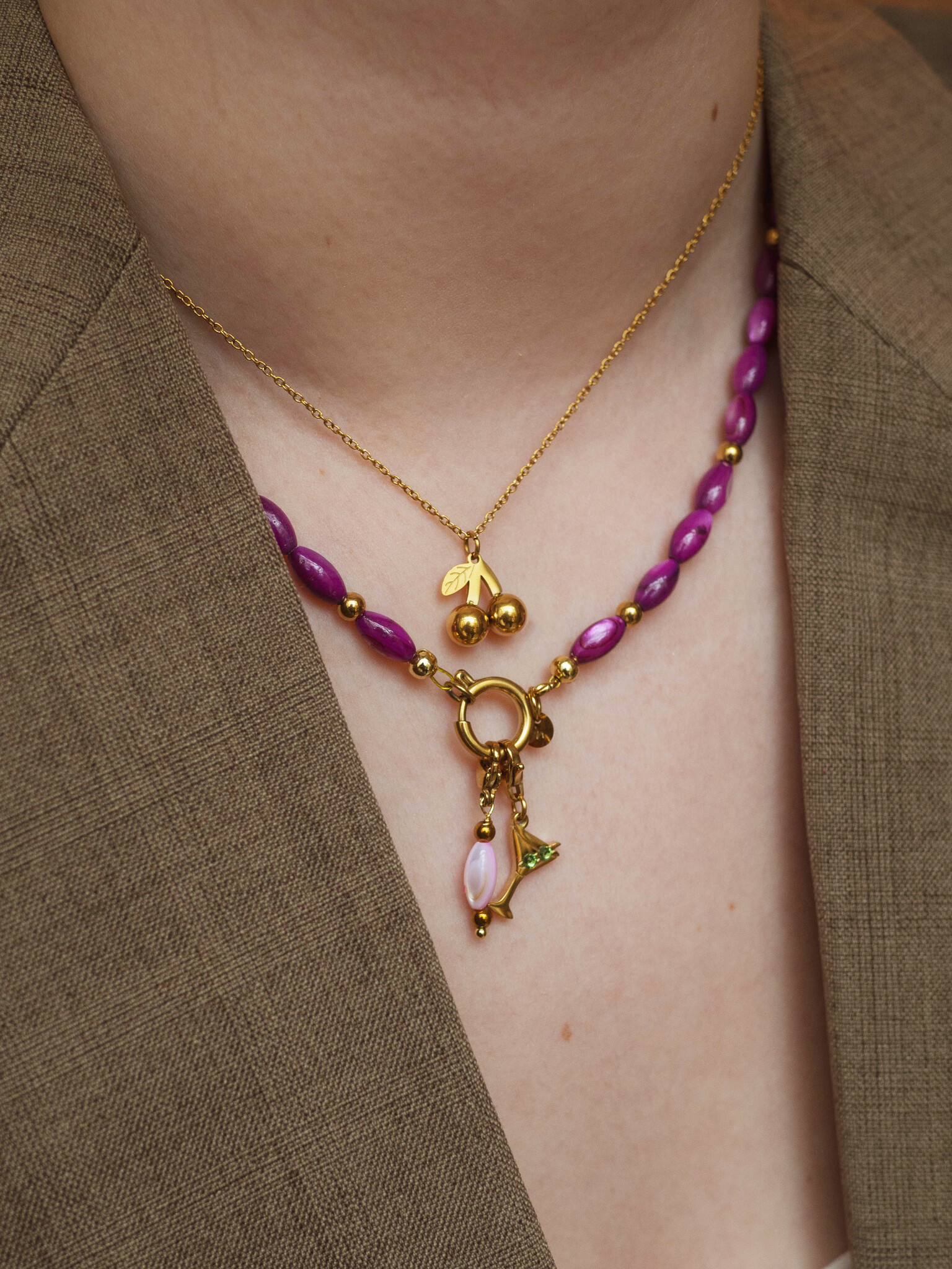 Ketting oval shell paars goud