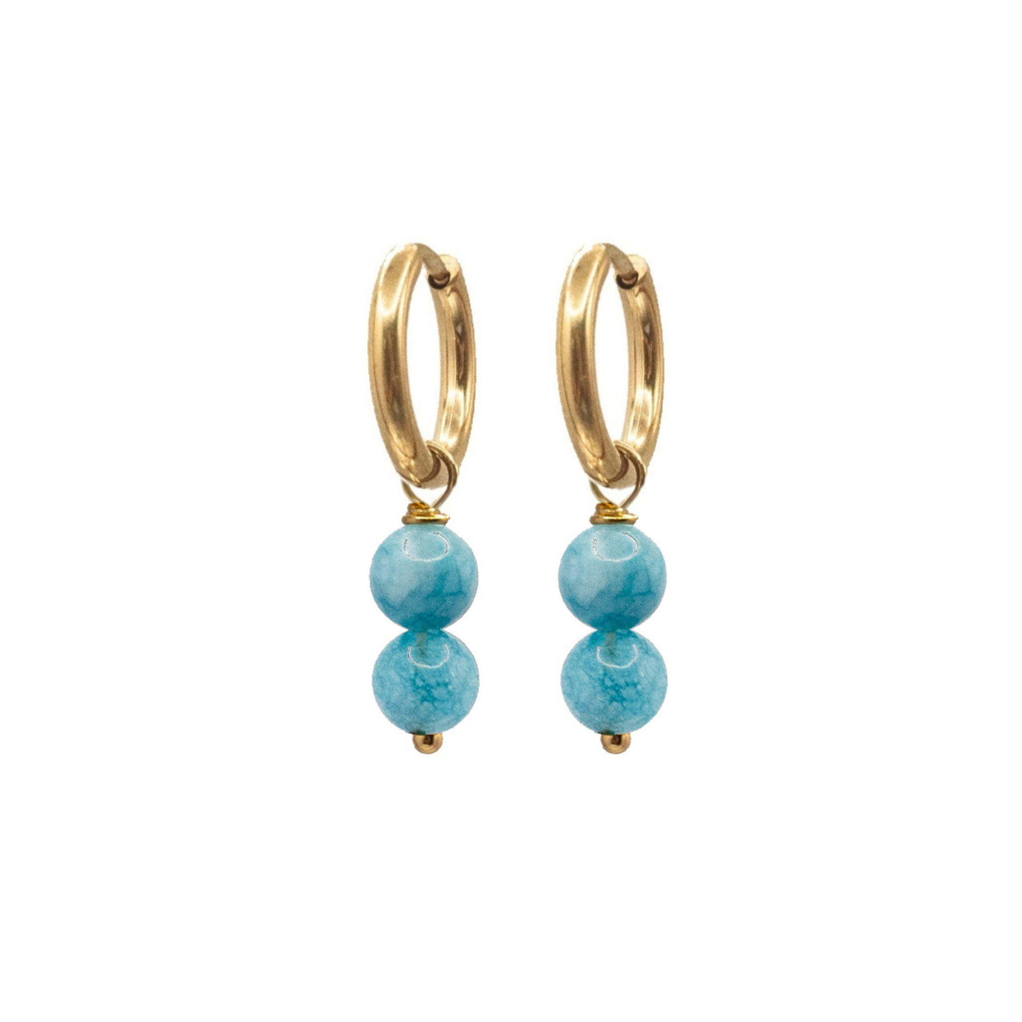 Oorringen jade 6mm blauw goud
