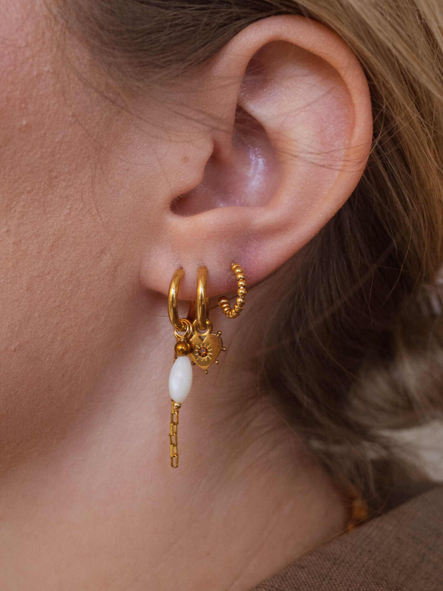 Oorringen square chain oval shell wit goud