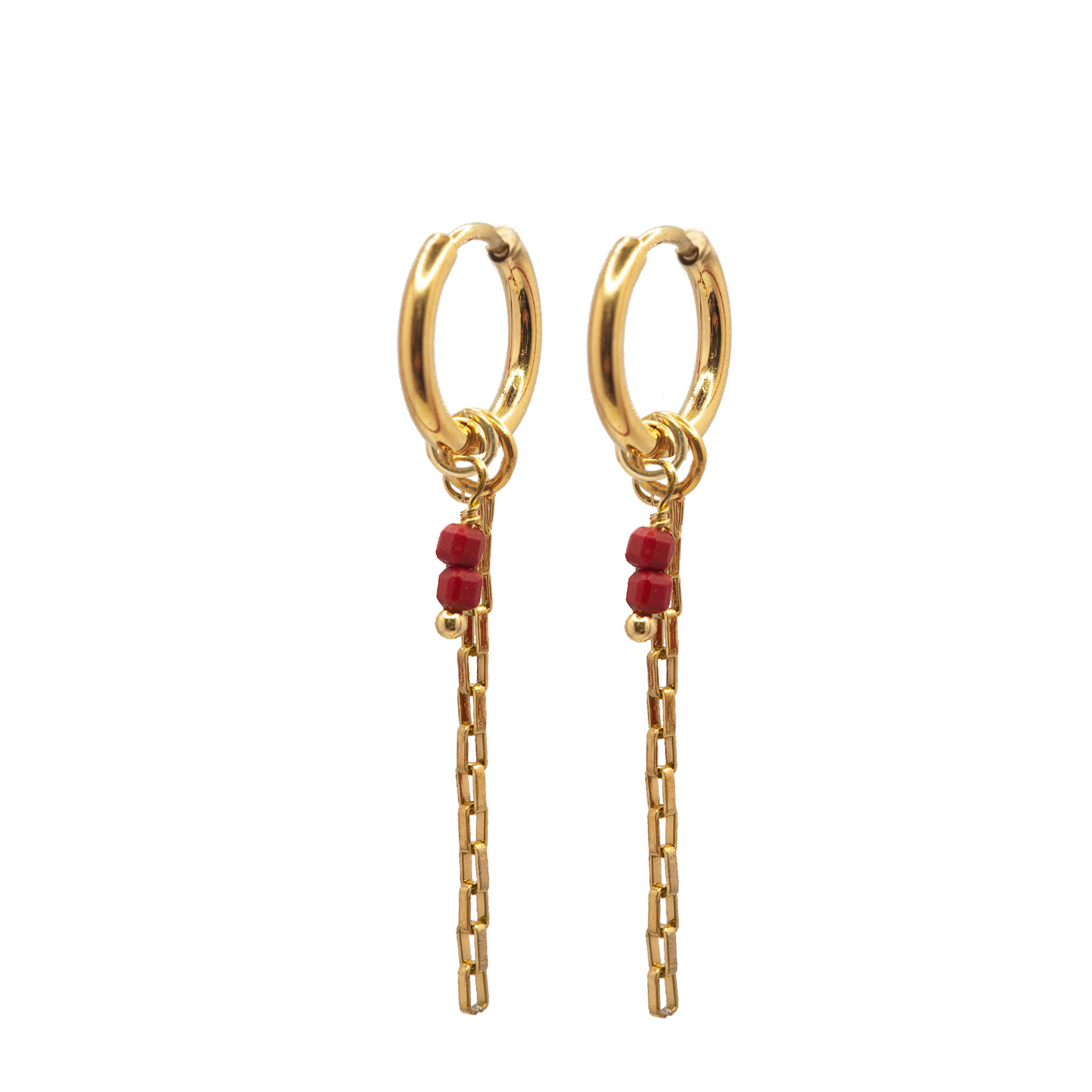 Oorringen square chain cube beads 2mm rood goud