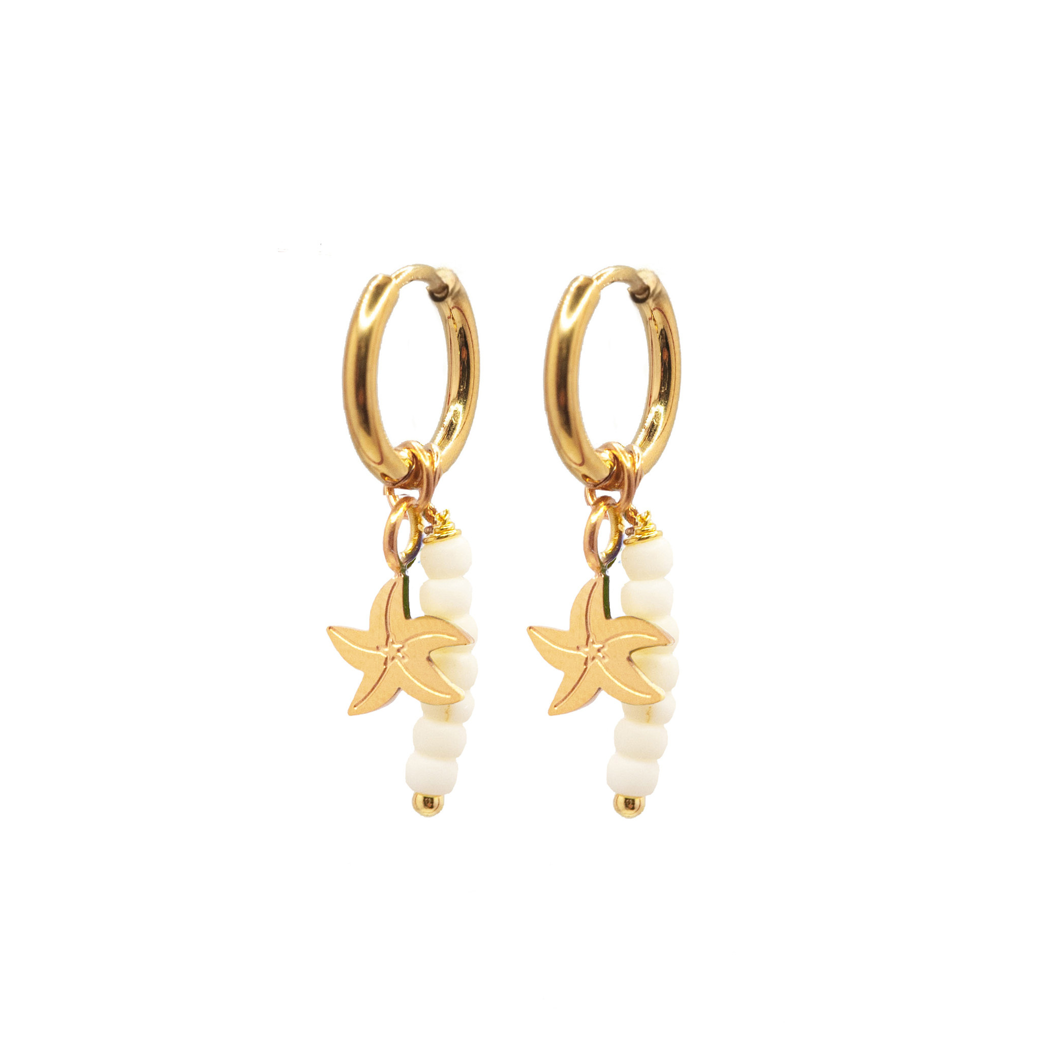 Oorringen (twisted) starfish wit goud