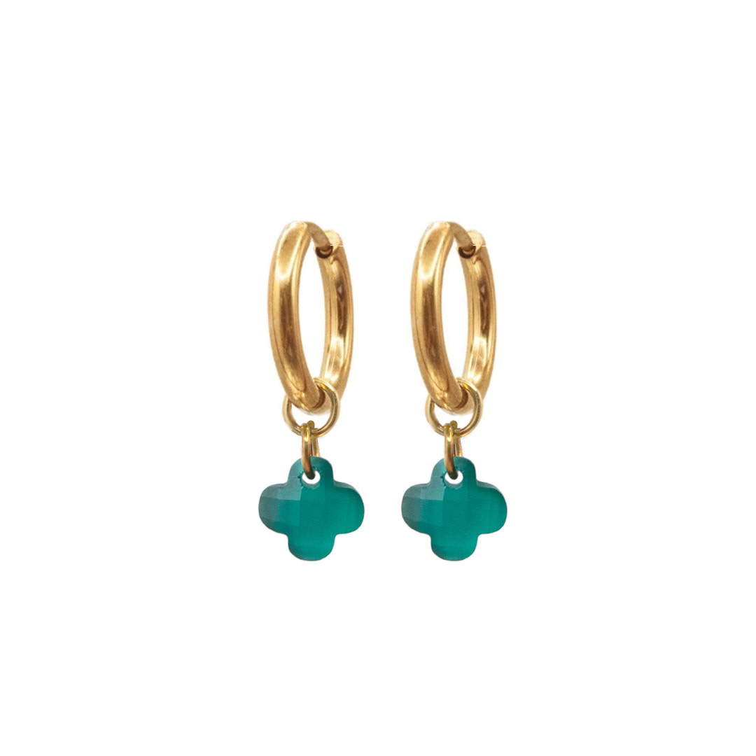Oorringen clover mat smaragd groen goud
